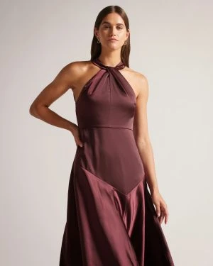 Ted Baker Renon Twist Neck Midi Dress, Deep Purple