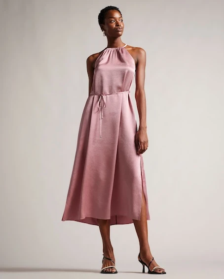 Your summer just got slinkier. ROXIEYY is a dress designed for hot parties on hot evenings: flowing, flattering lines and an elegant halter neckline give an air of vintage-inspired glamour, bought up to date with a modern midi length and tie waist belt. Just add a sparkling clutch bag to be cocktail-ready.