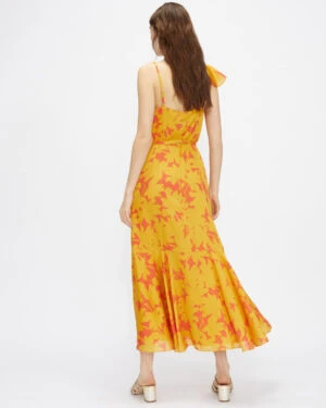The gorgeous yellow Ted Baker SARAAA Ruffle Midi Wrap Dress is the perfect gown for a summer day.