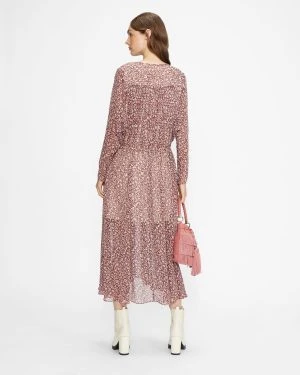 Autumn dressing just got dreamier thanks to VALLYY. This midi dress has a draped, softly flowing cut, with a tie-waist to ensure a perfect fit. Crafted from semi-sheer leopard print fabric with an integrated lining, it’s perfect for classy evening drinks. Just add heeled boots and a statement necklace for an elegant update on bohemian dressing with a hint of 70s cool.