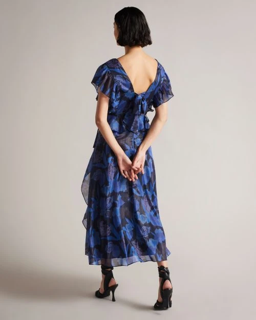 Get your party on in VERTEY. Adorned with frills and florals (just how we like it), this elegant dress is just what you need to take your evening look into full glam mode.