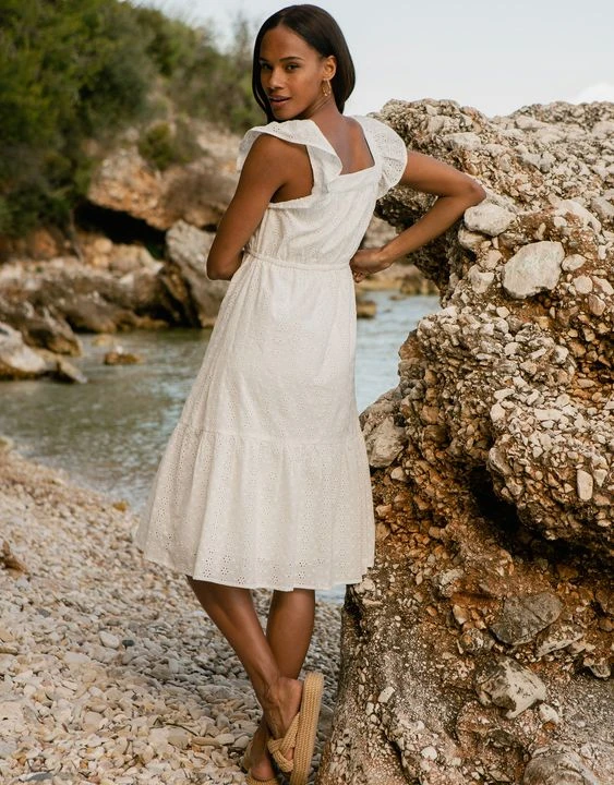 Feel elegant this spring and summer in this floral broderie anglaise smock midi dress.