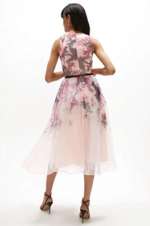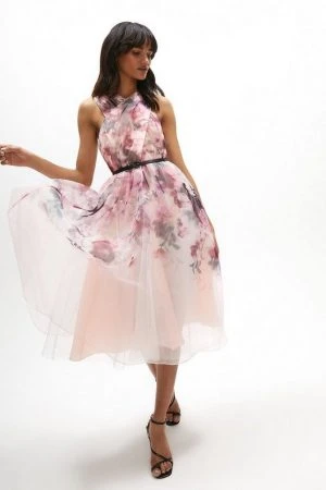 This stunning pink Wrap Front Full Skirt Organza Dress from Coast is ideal for your next summers event. Featuring a chic halter neck and an elegant A-line print skirt, wow in this beautiful dress.