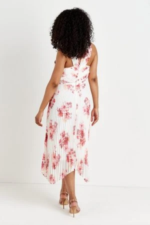 This stunning pink and Ivory & Pink Floral Pleated Halterneck Dress from Wallis is ideal for your next summers event. Featuring a chic halter neck and an elegant pleated skirt, wow in this beautiful midi dress.