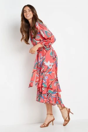 This stunning multi coloured Print Layered Midi Shirt Dress from Wallis is ideal for your next summers event. Featuring sleeves for coverage and an elegant V neckline, wow in this beautiful shirt dress.