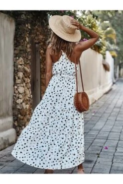 Little Mistress FS Collection Halterneck Tiered High Low Dress, White/Black