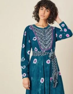 Monsoon ARTISAN STUDIO Bandini Printed Dress Teal/Blue/Multi