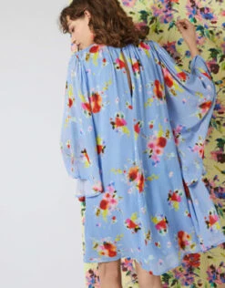 Monsoon Helen Dealtry Floral Timo Dress With Sustainable Viscose, Blue/Multi