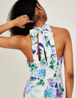 Monsoon Vivienna Halter Midi Dress In Sustainable Viscose Ivory/purple