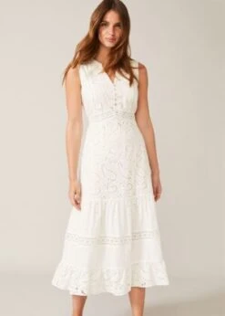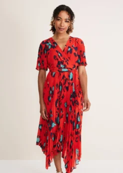 Phase Eight Kendall Butterfly Print Pleated Midi Dress, Vermillion Red/multi