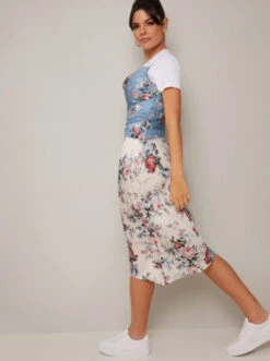 Chi Chi Contrast Graphic Print Midi Slip Cami Dress, Multicolour