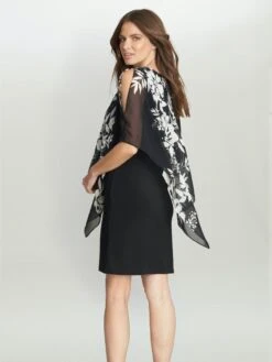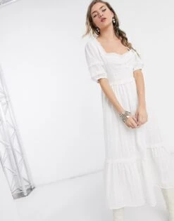 Dream Sister Jane Midi Tea Dress With Faux Pearl Buttons And Puff Sleeves In Floral Jacquard, Multi