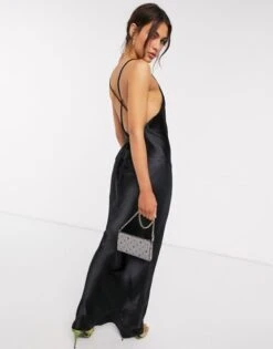 ASOS DESIGN Bridesmaid Satin Scoop Maxi Dress With Panelled Skirt And Button Back, Oyster