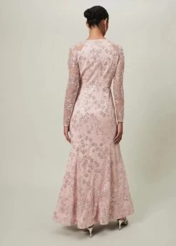 Phase Eight Michelle Lace Pleat Maxi Dress, Antique Rose/Blush