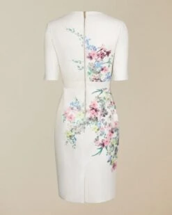 Ted Baker CAMLIAA Pergola Floral Print Bodycon Dress, Ivory/Multi