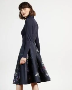 Ted Baker Lilymay Cowl Neck Bias Cut Midi Dress, Dark Blue/Navy