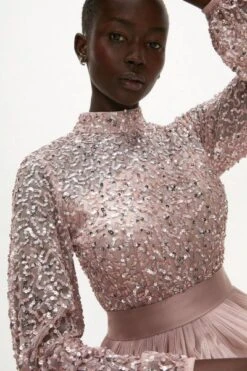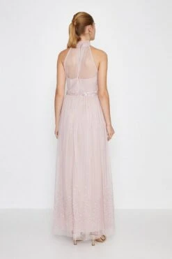 Coast High Neck Sequin Mesh Maxi Bridesmaid Dress, Blush/Pink