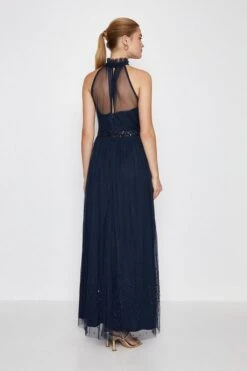 Coast High Neck Sequin Mesh Maxi Bridesmaid Dress, Navy Blue