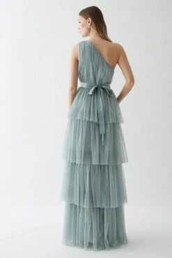Coast One Shoulder Tiered Mesh Bridesmaids Dress, Sage Green