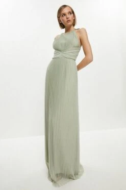 Coast Petite All Over Pleated Bridesmaid Maxi Dress, Sage Green