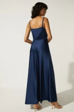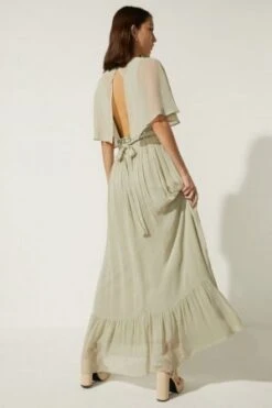 Coast Open Ruffle Back V Neck Satin Bridesmaids Dress, Green