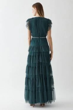 Coast Tiered Tulle Diamante Trim Bridesmaids Dress, Forrest Green