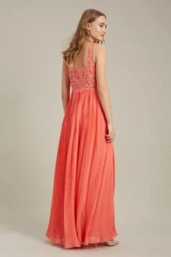 Dorothy Perkins Square Neck Embellished Pleated Maxi Bridesmaid Dress, Coral/Orange