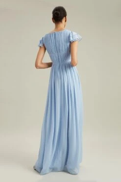 Dorothy Perkins Tall Angel Sleeve Pleated Chiffon Maxi Dress, Light Blue