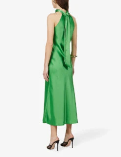 Forever New Hallie Draped Satin Midi Dress, Blue Charisma/Lilac