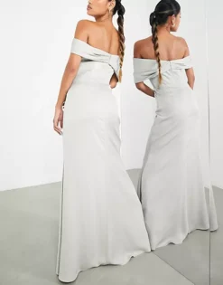 ASOS EDITION Satin Bardot Drape Wrap Maxi Dress In Sage Green