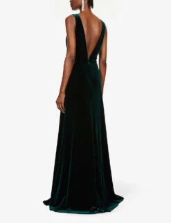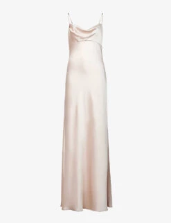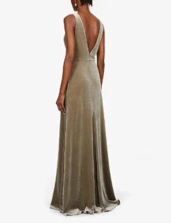 HOUSE OF CB Violette Slim-fit Fishtail-hem Woven Maxi Dress, Mushroom
