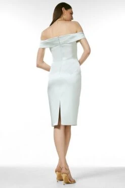 Karen Millen Italian Structured Satin Bardot Dress, Sage Green