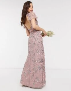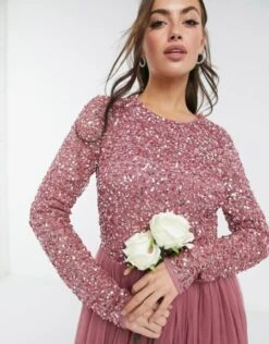 Maya Delicate Sequin Long Sleeve Maxi Dress With Ruffle With Tulle Skirt Vintage Rose/pink