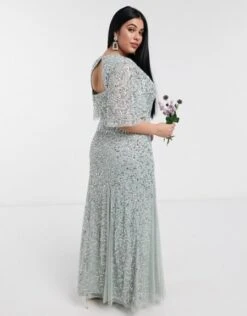 Maya Plus Plunge Front Flutter Sleeve Delicate Sequin Maxi Dress In Sage Green