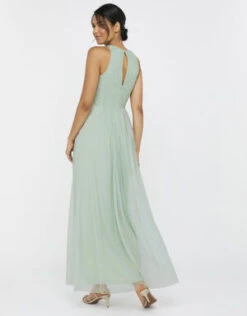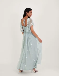 Monsoon Sophie Embroidered Shorter Length Maxi Bridesmaid Dress Green