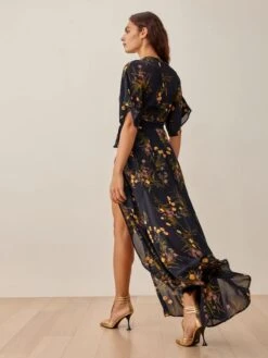 Reformation Winslow Floral Wrap Style Maxi Dress, Mademoiselle/Black
