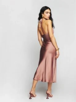 Reformation Nerida Halter Cut Out Silk Dress, Turmeric/Yellow
