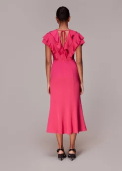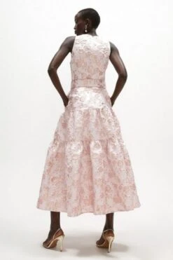 Wallis Coast Premium Jacquard Tiered Midaxi Dress, Baby Pink/Blush
