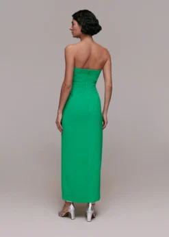 Vila Bridesmaid Satin Strappy One Shoulder Maxi Dress In Deep Green