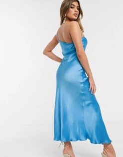 BEC + BRIDGE Bec & Bridge Frederic Asymmettric Midi Slip Dress In Azure/blue