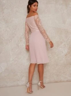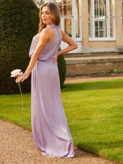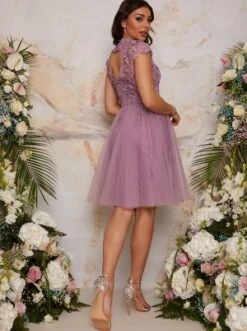 Chi Chi Lace Bodice Cut Out Bridesmaid Midi Dress, Lilac/Purple
