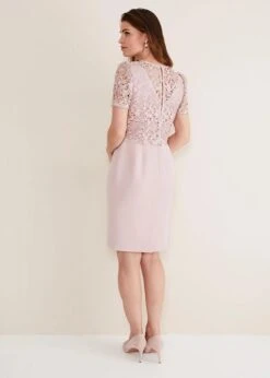Coast Pencil Dress With Satin Lace Bodice & Flare Cuff, Light Blush/Ivory