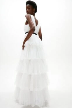 Dorothy Perkins Embellished Tulle Wrap Bridesmaid Dress, White