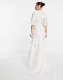 ASOS EDITION Embroidered Flutter Sleeve Wedding Dress, White