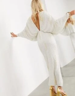 ASOS EDITION Embellished Pearl Batwing Sleeve Maxi Dress, Ivory