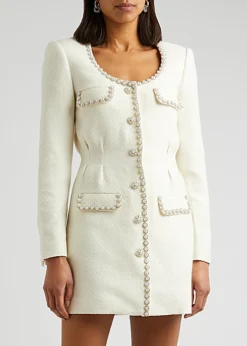 SELF PORTRAIT SELF-PORTRAIT Embellished Tweed Mini Dress, Ivory