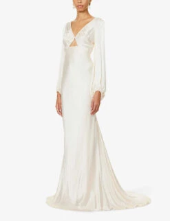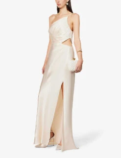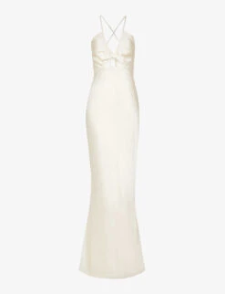 Shona Joy La Laune Sleeveless Ruched Satin Maxi Dress, Cream