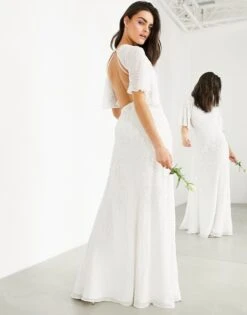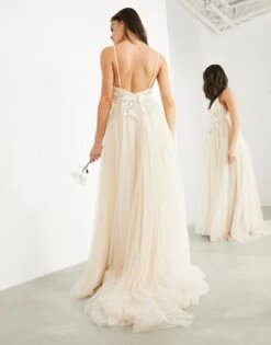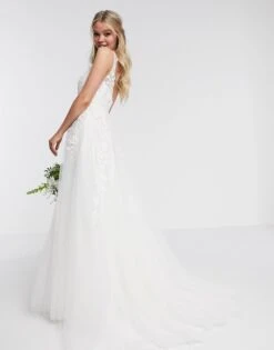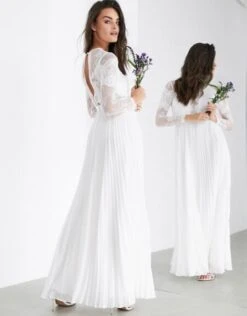 ASOS EDITION Iris Long Sleeve Lace Bodice Maxi Wedding Dress With Pleated Skirt, Ivory