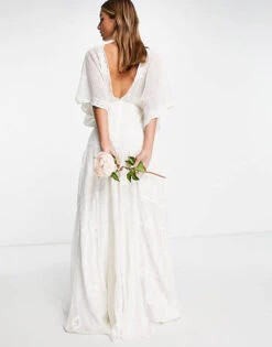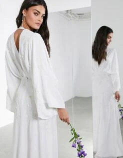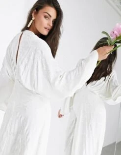 ASOS EDITION Luna Embroidered Satin Kimono Wedding Dress, Ivory