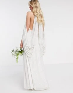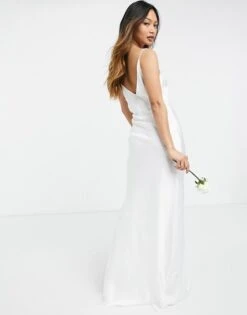 ASOS EDITION Rebecca Ruched Plunge Satin Wedding Dress, Ivory